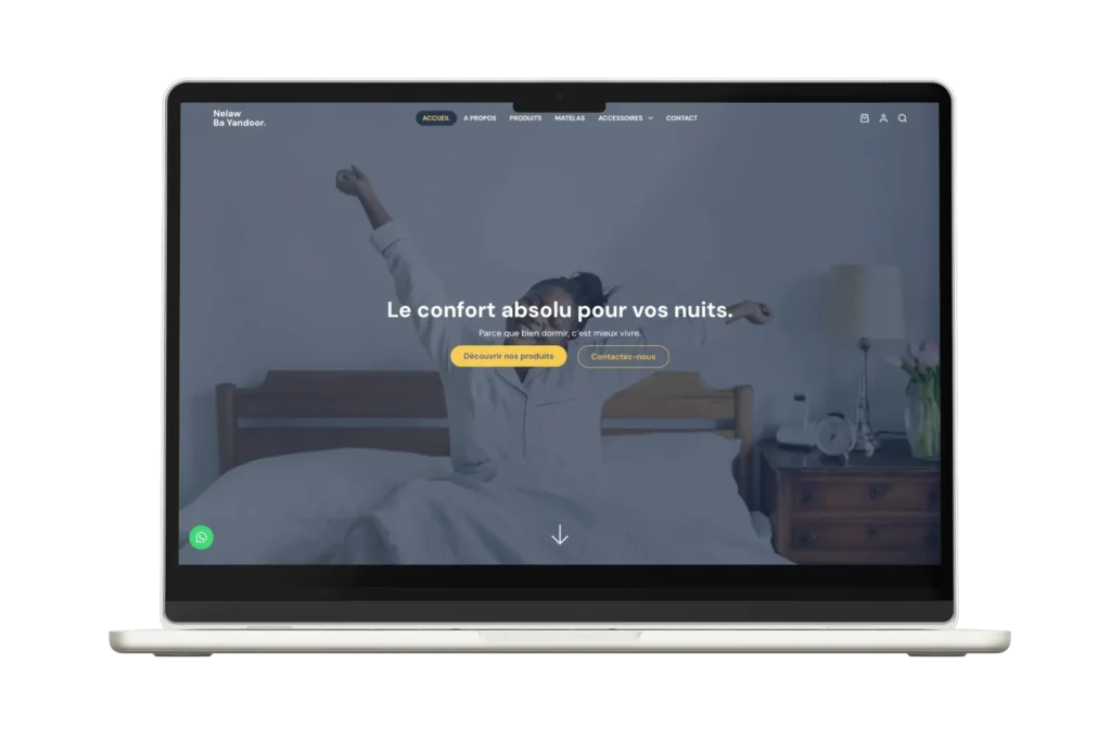 Ce site e-commerce présente des collections de haute couture sénégalaise, avec une navigation fluide et intuitive.